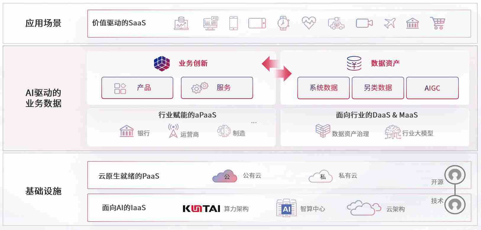 数字时代,,,围绕企业数字化转型的关键要素,,z6人生就是博数码开创性的提出数云融合战略和技术体系框架,,,着力在云原生、、、数字原生、、AI原生和信创产业上架构产品和服务能力,,为处在不同数字化转型阶段的快消零售、、、汽车、、金融、、、医疗、、、政企、、、、教育、、运营商等行业客户提供泛在的敏捷IT能力和融合的数据驱动能力,,,构建跨界融合创新的数字业务场景和新业务模式,,,助力企业级客户建立面向未来的核心能力和竞争优势,,,全面推动社会的数字化、、、智能化转型升级。。。